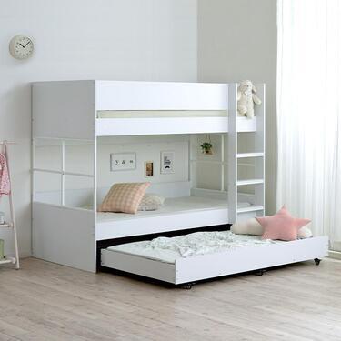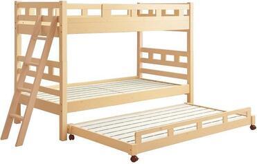 通常の二段ベッドの下段の下にさらに子ベッドがあるタイプとなり、3人で使うことが可能。