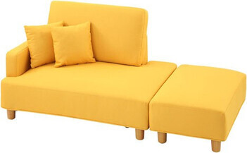 頭までしっかり支えてくれる折りたたみ可能な黄色いソファ