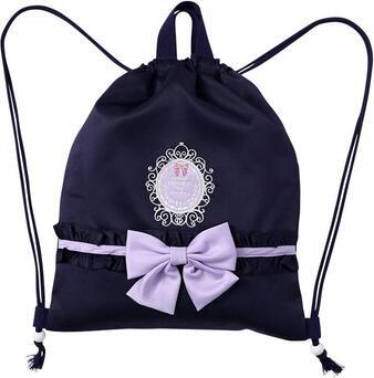 女の子なら誰しもあこがれる、上品なサテン生地にフリルやリボンをあしらったナップサック。
