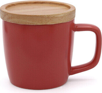 木と陶器の組み合わせであたたかみを感じる蓋付きマグカップ