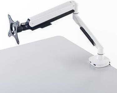 2口USBポート付きがうれしいホワイトのモニターアーム